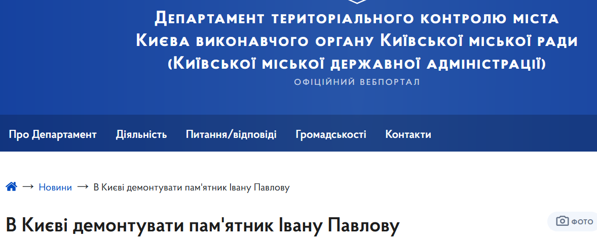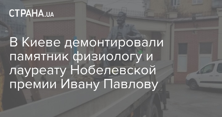 У Києві демонтували пам'ятник лауреату Нобелівської премії фізіологу Івану Павлову. Монумент стояв біля Олександрівської лікарні в Печерському районі столиці.