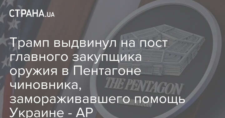 Трамп висунув кандидатом на посаду головного закупника зброї в Пентагоні Майкла Даффі – чиновника, який у 2019 році розпорядився заморозити військову допомогу Україні.