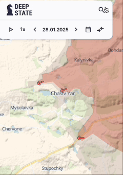 У російських військ великий поступ у південній частині Часового Яру. Про це свідчить мапа українського військового паблика Deep State.