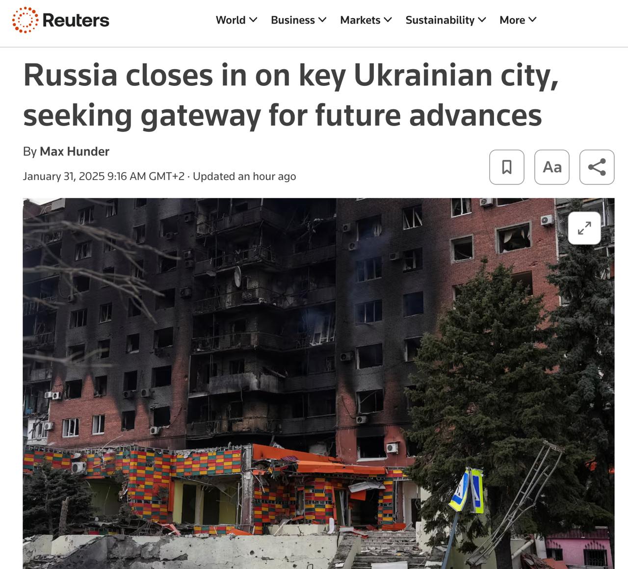 Війна в Україні триває 1073-й день. Слідкуємо за останніми новинами та головними подіями 31 січня 2025 року в онлайні, що оновлюється.