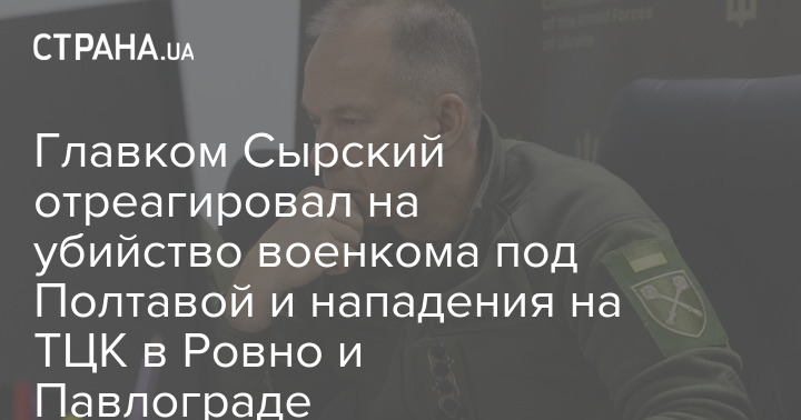 Головком ЗСУ Олександр Сирський відреагував на вбивство військкома під Полтавою та напади на ТЦК у двох областях.