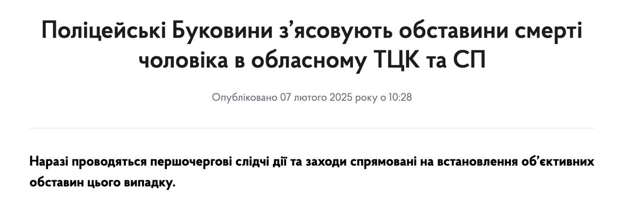 "За попередньою інформацією, під час проходження військово-лікарської комісії, у нього різко погіршилося самопочуття і він знепритомнів. Буковинцю одразу почали надавати домедичну допомогу, а на місце події були викликані медики. Однак, під час проведення реанімаційних заходів, лікарями було констатовано смерть чоловіка", - повідомляє поліція".