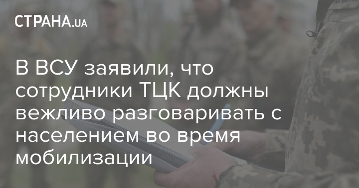 Співробітники ТЦК мають чемно розмовляти з населенням під час проведення мобілізації. Про це заявив начальник управління комунікацій командування Сухопутних військ ЗСУ Віталій Саранцев у коментарі "Радіо Свобода".