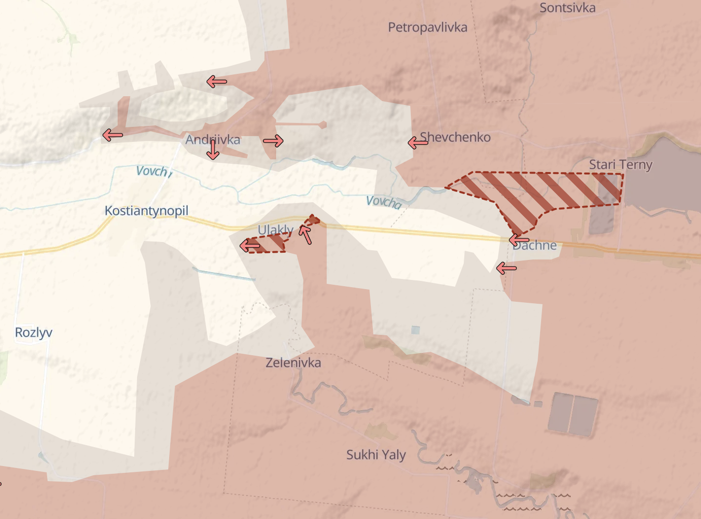 Також росіяни продовжують просування на захід від Великої Новосілки - там вони наступають практично щодня. Вектор руху – у напрямку тієї ж траси на Запоріжжі.