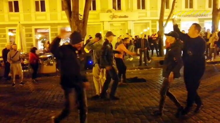 В Одесі на Дерибасівській жінка голосно обурювалася підлітками, рясно матюкаючись. Її гнів викликало те, що вони слухають музику та розмовляють російською мовою.