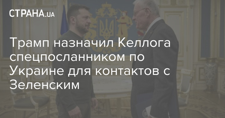 Президент США Дональд Трамп заявив, що призначив Кіта Келлога спеціальним посланцем Україною, який займатиметься контактами з українським президентом Володимиром Зеленським.
