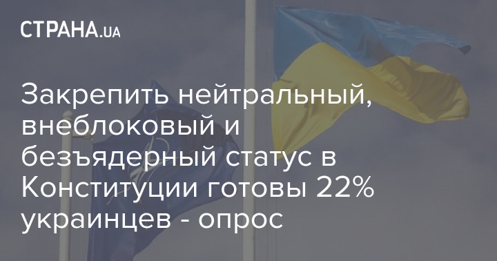 Закріпити нейтральний, позаблоковий та без'ядерний статус у Конституції готові 22% опитаних українців. Про це свідчить опитування соціологічної служби Центру Разумкова.