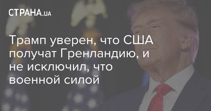 Президент США Дональд Трамп упевнений, що США отримають Гренландію, і не виключив, що може бути застосована військова сила.
