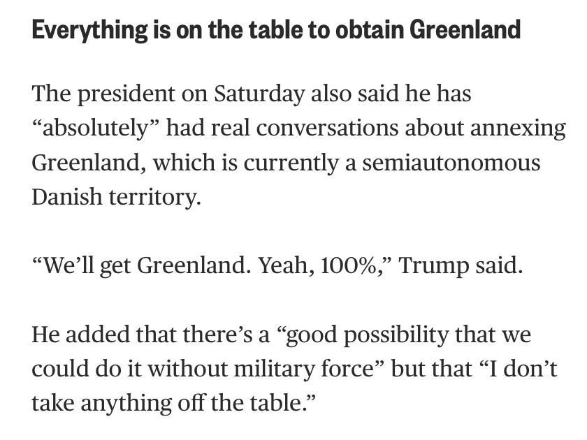 "Ми отримаємо Гренландію. Так, 100%", - заявив президент США.