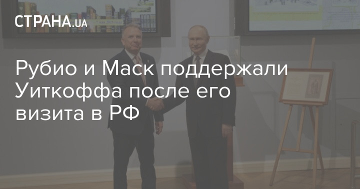 Держсекретар США Марко Рубіо та мільярдер Ілон Маск підтримали представника американського президента Дональда Трампа Стівена Віткоффа, який зустрівся з Володимиром Путіним у Санкт-Петербурзі.