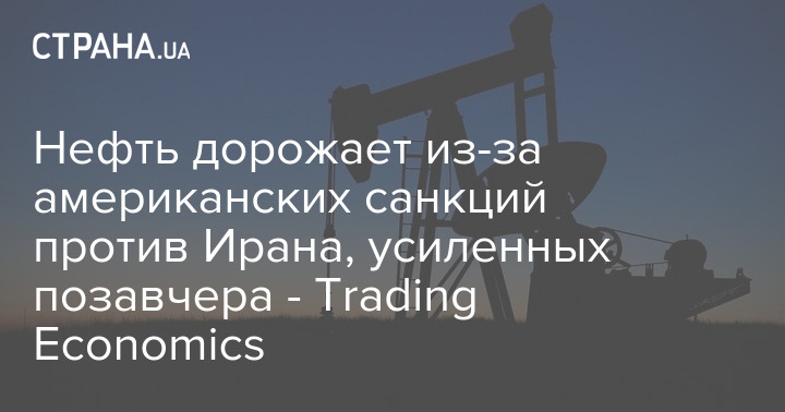 Нафта дорожчає через американські санкції проти Ірану, посилених позавчора. Про це пише Trading Economics.