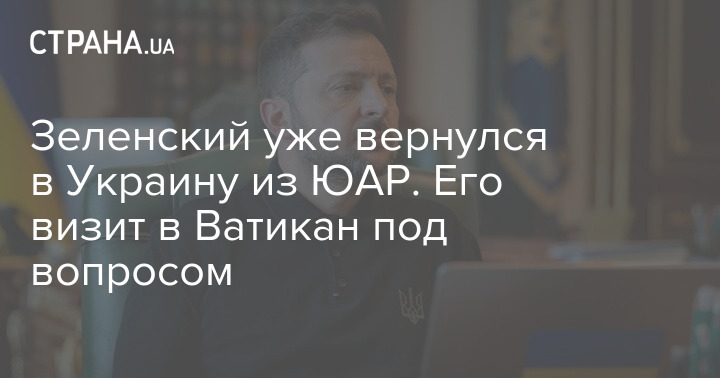 Зеленський уже повернувся до України з ПАР. Його візит до Ватикану під питанням