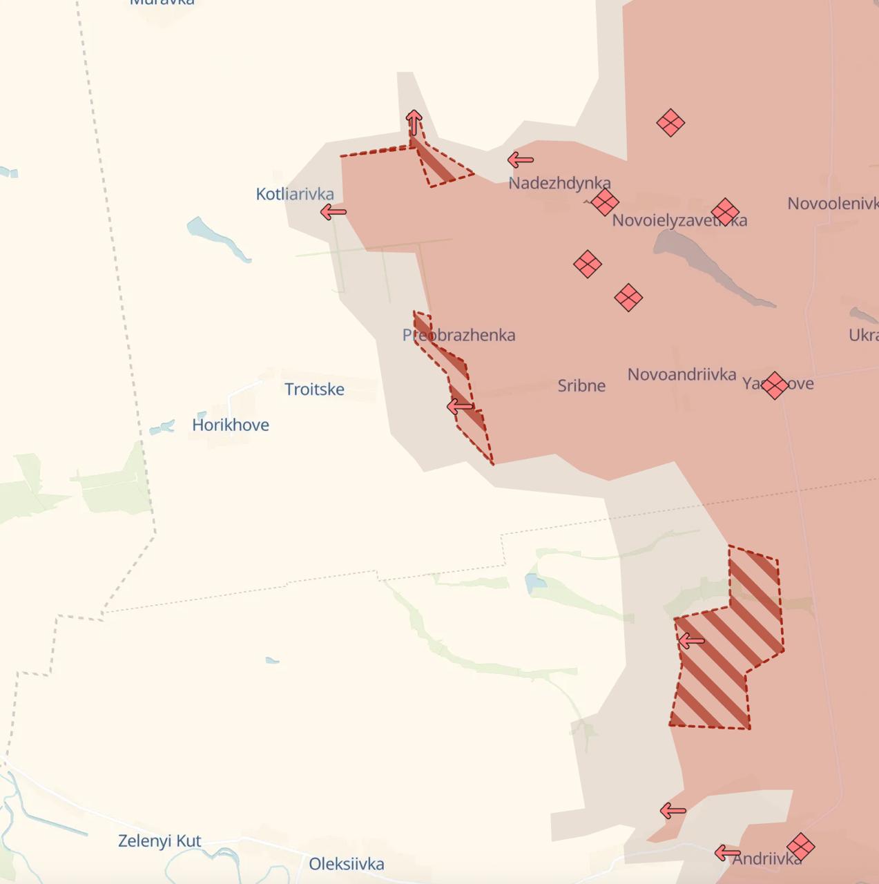 Ворог також просунувся на північ від Андріївки, до району Котлярівки та Преображенки (Новопавлівський напрямок, у бік кордону Дніпропетровської області).