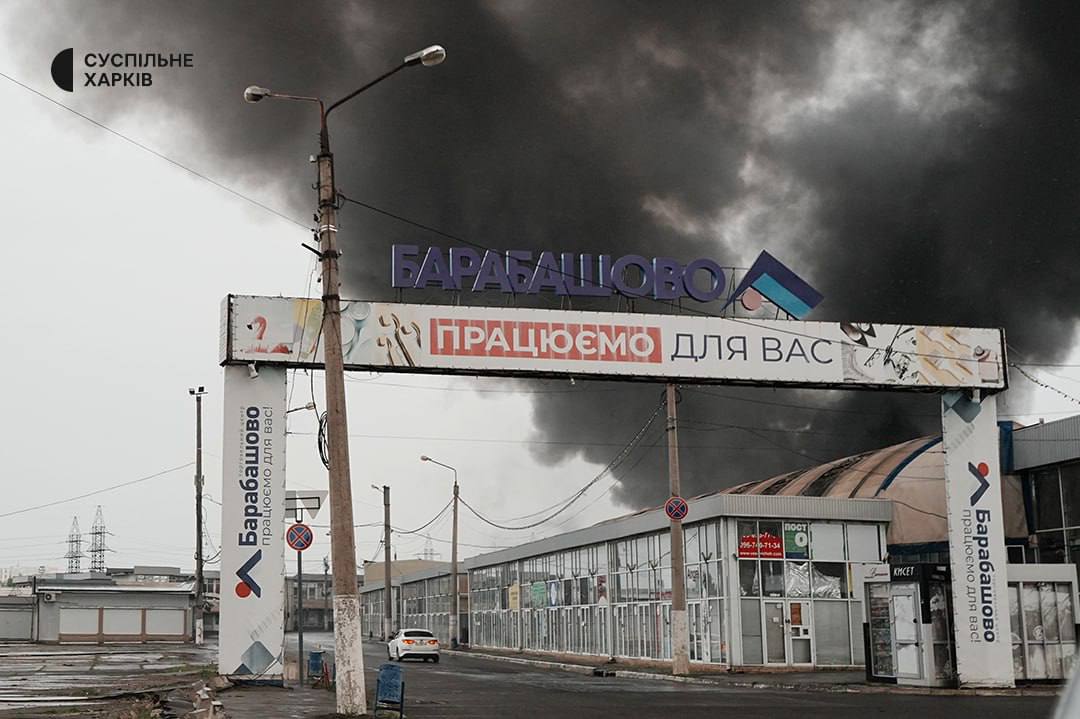 7.40 У Харкові після прильотів горить ринок Барабашово.