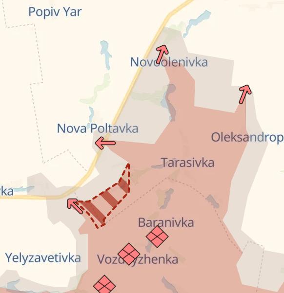 Просування є на Новопавлівському напрямку на південь від Срібного, а також на південь від Костянтинівки - в районі Водяного 2-го. У результаті вже у кількох місцях тривають бої на трасі Покровськ – Костянтинівка.
