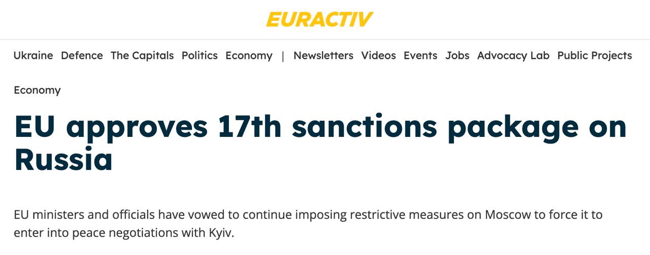 Угорщина та Словаччина не стали блокувати 17-й пакет санкцій ЄС проти РФ "через його відносну слабкість".