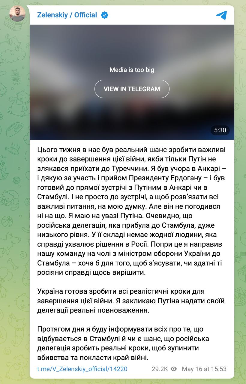 Друга зустріч відбудеться в Офісі президента Долмабахче, де вчора очікувалися прямі переговори України та РФ.