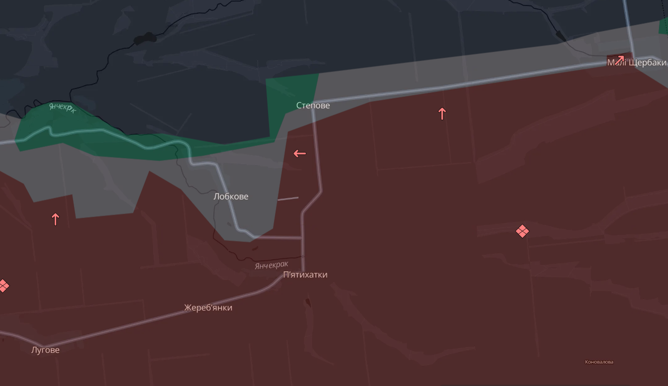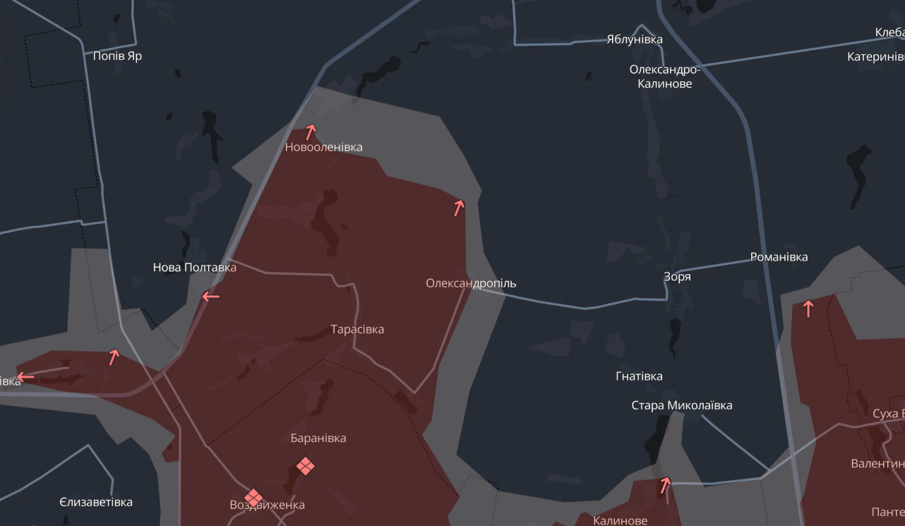 14:53 Російські війська просунулися біля Лобкового (Запорізька область), біля Березівки та Олександрополя. Два останні населені пункти - ділянка фронту між Покровськом та Торецьком.