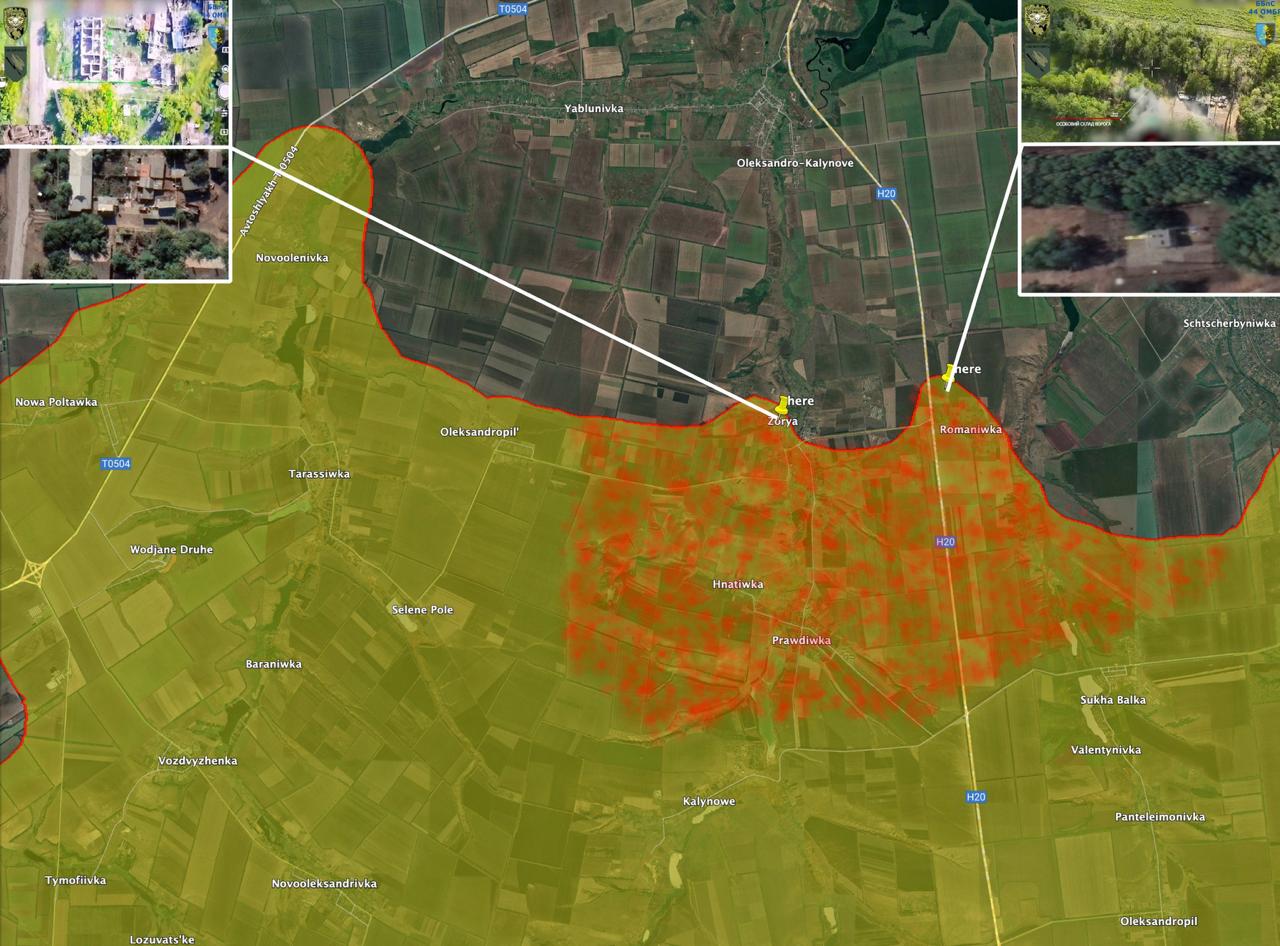 Військовослужбовець ЗСУ з позивним "Мучною" пише, що російська армія зайшла до Попова Яру, взяла під контроль частину Яблунівки та Зорі, а також повністю опанувала Стару Миколаївку та Романівку.