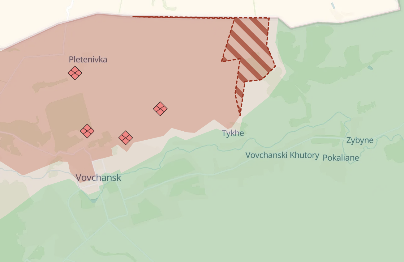 Також на півночі, але на схід "ожила" Вовчанська ділянка. Deep State вперше майже за рік фіксує просування росіян на схід від Вовчанська біля села Тихе. Про те, що ситуація тут ускладнюється, українські паблики пишуть ще минулого тижня.