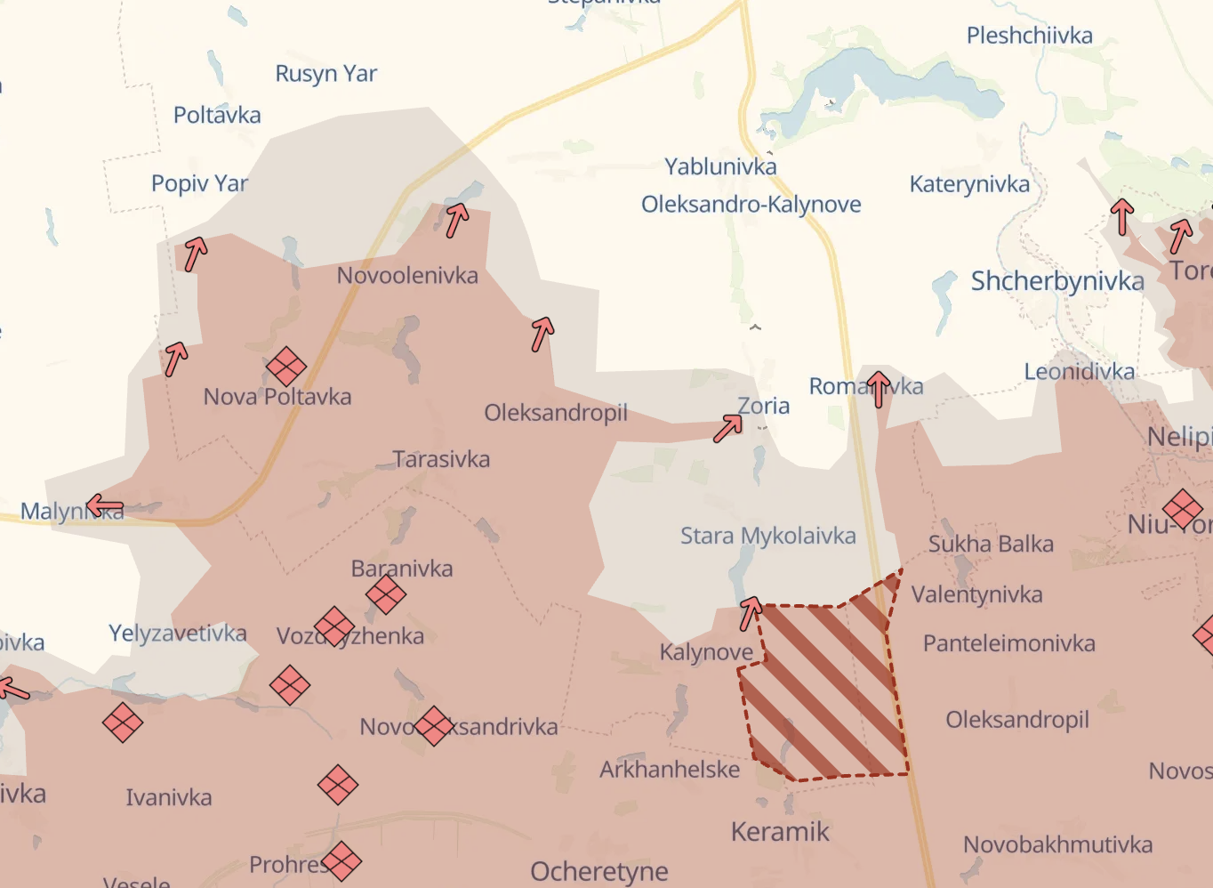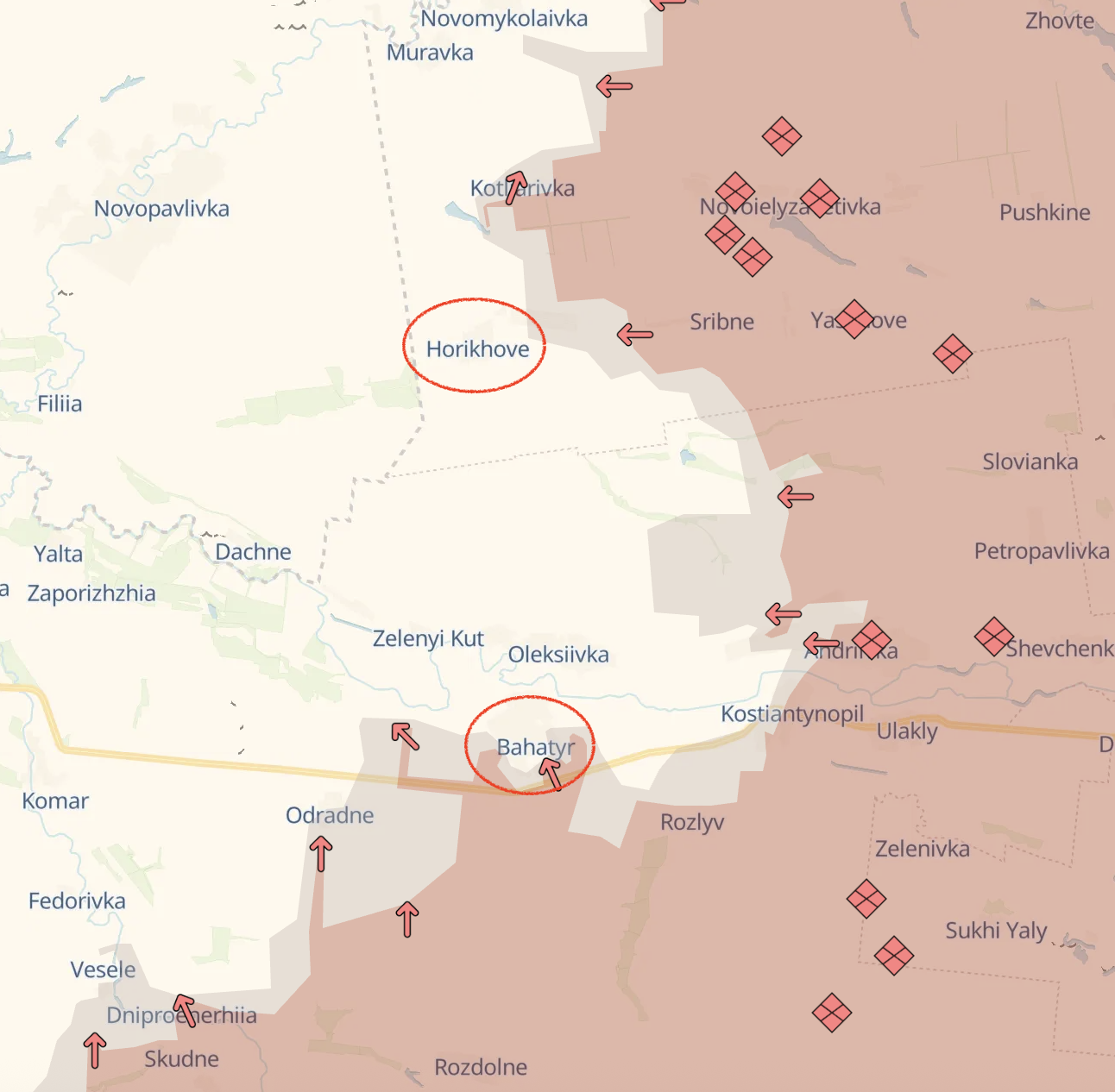 Також, за версією Deep State, російські війська захопили нові території на захід та схід від Богатиря на Новопавлівському напрямку.
