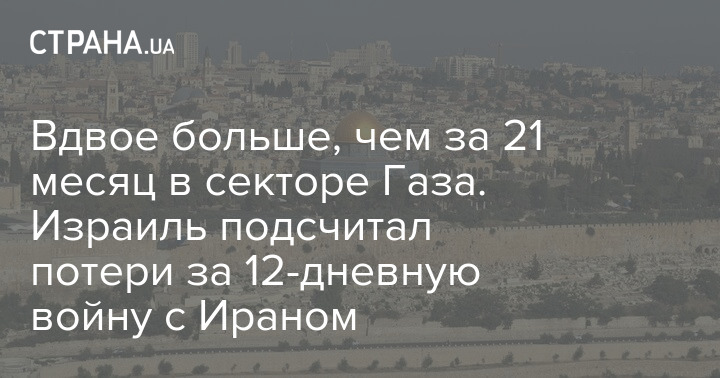 Масштаб збитків Ізраїлю за 12 днів війни з Іраном удвічі перевищує фінансові втрати за 21-місячну кампанію в секторі Газа.