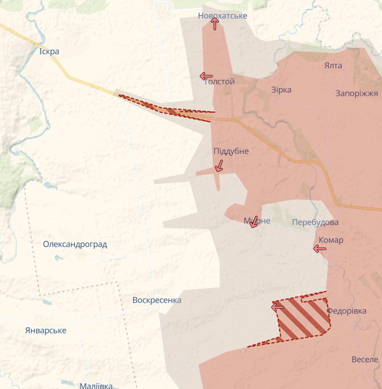 Раніше ми підбивали підсумки попереднього дня. Росіяни просунулися на північ від Мирнограда, з боку Разіно, де "сіра зона" підійшла до міста Родинське. Також РФ знову просунулась у Малинівці Запорізької області. На Новопавлівському напрямку росіяни захопили село Богатир, а також просунулися в Олексіївці.