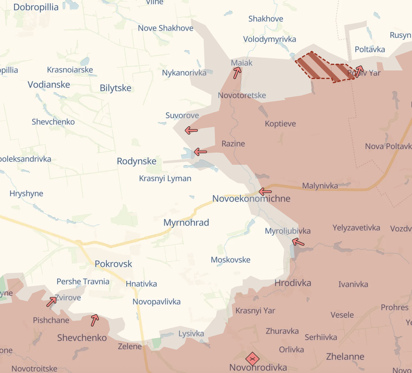 Також росіяни просунулися на північ між Костянтинівкою та Покровськом.