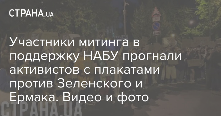 Учасники мітингу на підтримку НАБУ прогнали активістів із плакатами проти Зеленського та Єрмака. Відео та фото
