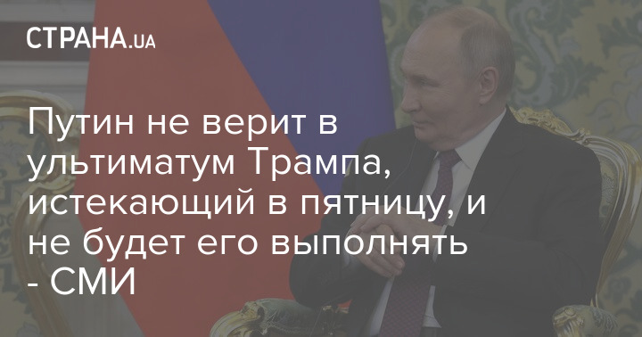 Президент РФ Володимир Путін не вірить у ультиматум голови Білого дому Дональда Трампа, який закінчується у п'ятницю, і не має наміру його виконувати.