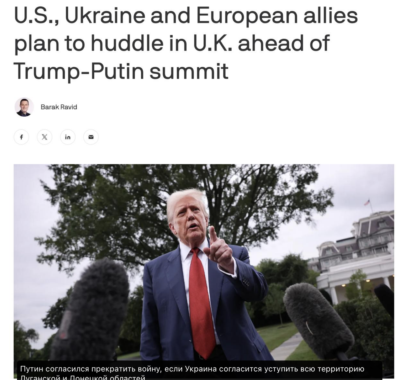 13:10 На Заході триває кампанія проти можливих домовленостей Трампа та Путіна, які можуть включати вимогу до України вивести війська з усього Донбасу.