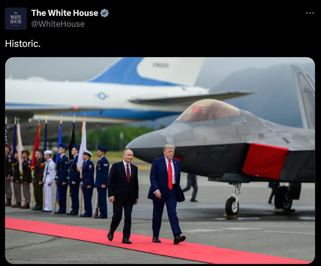 23:10 Білий дім опублікував перше офіційне фото із зустрічі Трампа з Путіним.