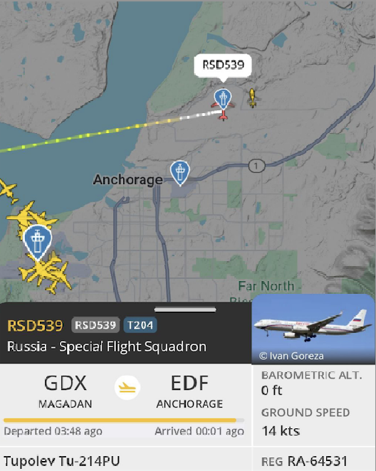 17:58 Путін уже вилетів із Магадана. Приблизно через 4 години його літак приземлиться в Анкориджі, де пройдуть переговори з Трампом.