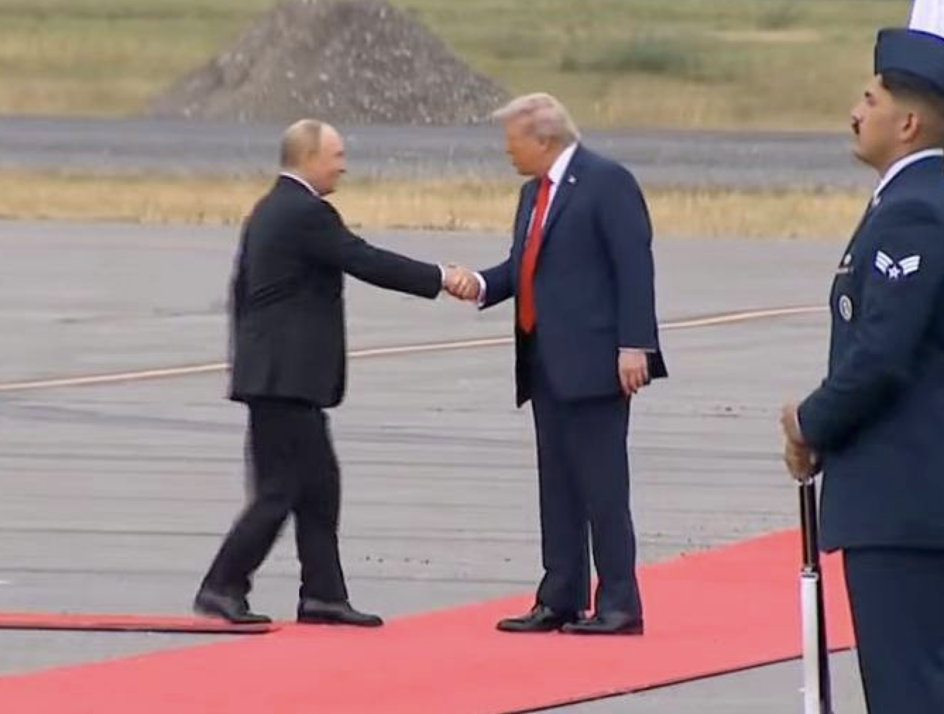 22:15 Повне відео з виходом Трампа та Путіна з літаків та першого рукостискання.