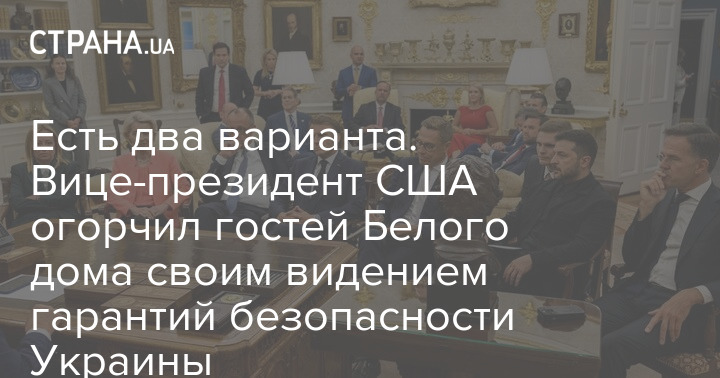 Віце-президент Сполучених Штатів Джей Ді Венс під час зустрічі керівництва США, лідерів країн Європейського союзу та Володимира Зеленського запропонував два варіанти гарантій безпеки для України, які не сподобалися присутнім, повідомляє "ДТ" з посиланням на джерело.