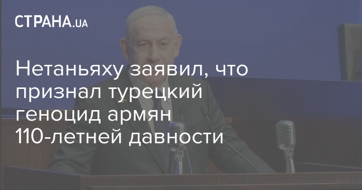Прем'єр Ізраїлю Біньямін Нетаньяху заявив, що визнав турецький геноцид вірмен 110-річної давнини.