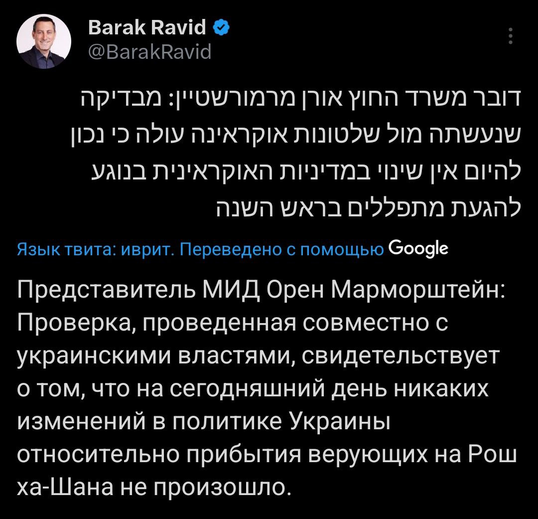 Водночас журналіст Axios Барак Равід із посиланням на МЗС Ізраїлю повідомив у соцмережі X, що Україна не змінювала свого підходу до приїзду хасидів до Умані.