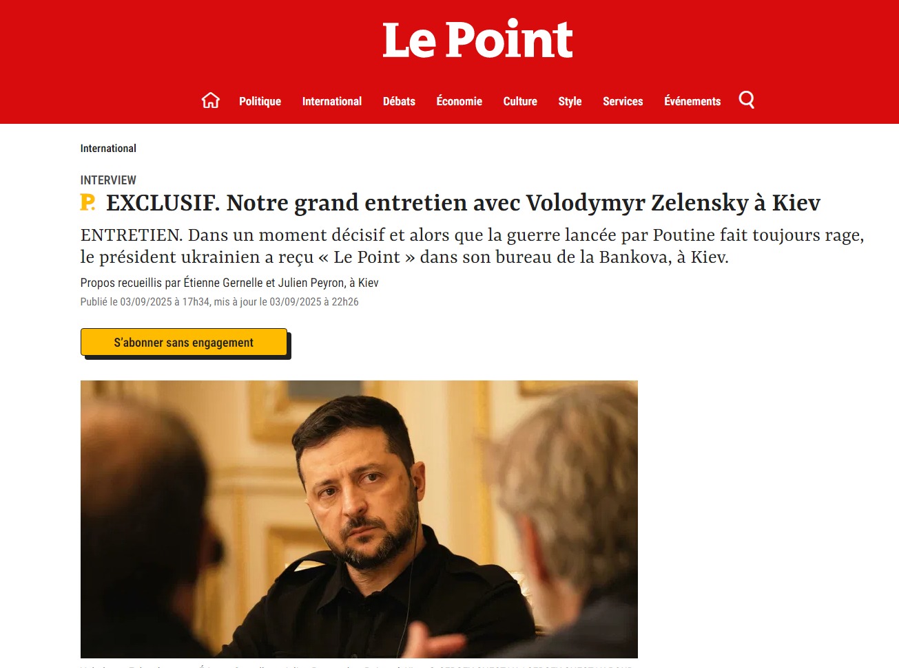 Про це український президент сказав у інтерв'ю французькому виданню Le Point.
