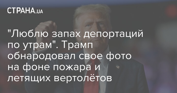 "Люблю запах депортацій вранці". Трамп оприлюднив своє фото на тлі пожежі та вертольоти, що летять.
