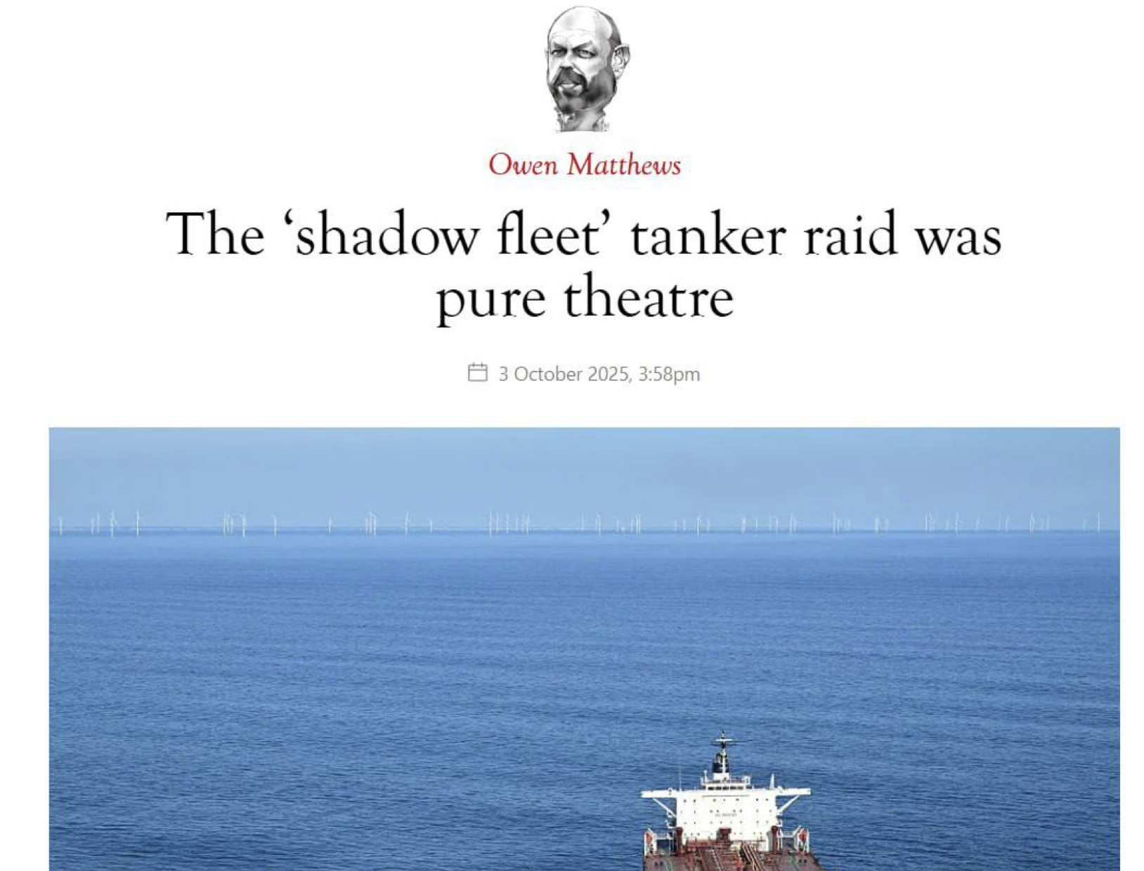 "Цього разу Путін, можливо, має рацію. Макрон назвав цей драматичний абордаж важливим кроком у боротьбі з тіньовим флотом, який зараз перевозить значну частину російської сирої нафти і живить військову машину Кремля. Але на практиці Європа мало що може зробити для припинення цього трафіку, більше того, вона сама є великим споживачем". Spectator.