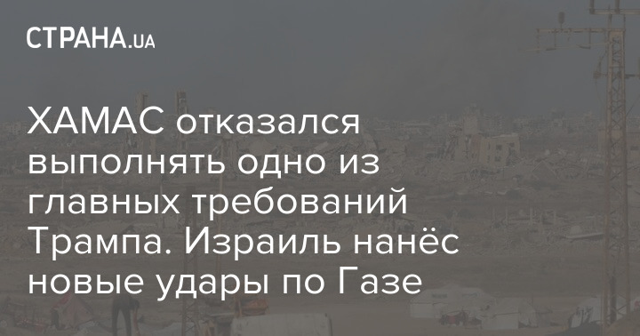 ХАМАС відмовився виконувати одну із головних вимог Трампа. Ізраїль завдав нових ударів по Газі