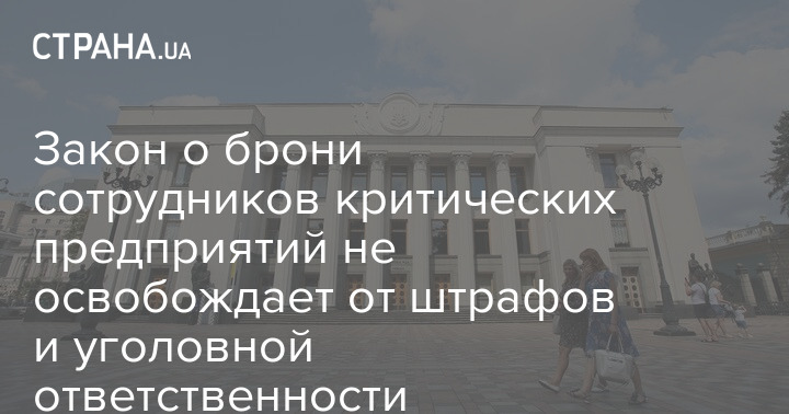 Ухвалений Верховною Радою законопроект №13335 про бронювання від мобілізації співробітників критично важливих підприємств, які мають проблеми з обліковими документами, не звільняє їх від штрафів та загрози кримінальної відповідальності.
