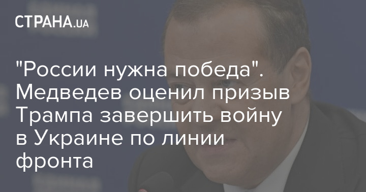Заступник голови Ради безпеки РФ Дмитро Медведєв, коментуючи заклик президента США Дональда Трампа до завершення війни по лінії фронту, заявив, що Росії в Україні "потрібна перемога з усіма відомими умовами".