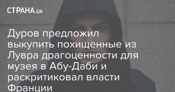 Засновник Telegram Павло Дуров заявив, що викупить викрадені з Лувру скарби для передачі в аналогічний музей в Абу-Дабі.