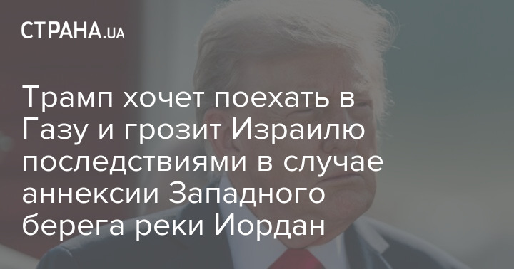 Президент США Дональд Трамп, не вдаючись до деталей, сказав, що хоче виїхати до Гази. І попередив Ізраїль на випадок, якщо той все ж таки реалізовуватиме намір анексувати Західний берег річки Йордан.