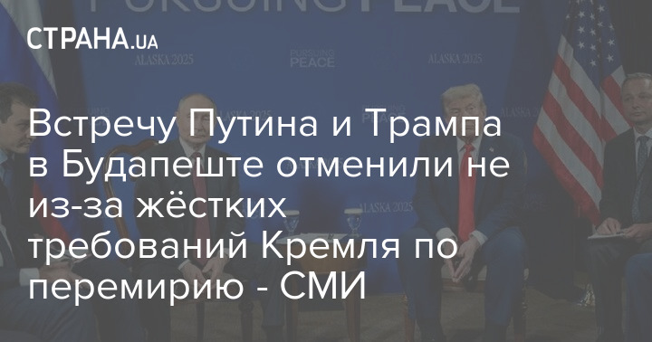Раніше Financial Times з посиланням на джерела повідомила, що США скасували зустріч Путіна та Трампа в Будапешті після отримання з Москви "меморандуму щодо України" з надмірними вимогами. За даними видання, після цього між главою МЗС РФ Сергієм Лавровим та держсекретарем США Марко Рубіо відбулася напружена розмова, а Рубіо заявив Трампу, що Москва не виявляє готовності до переговорів.