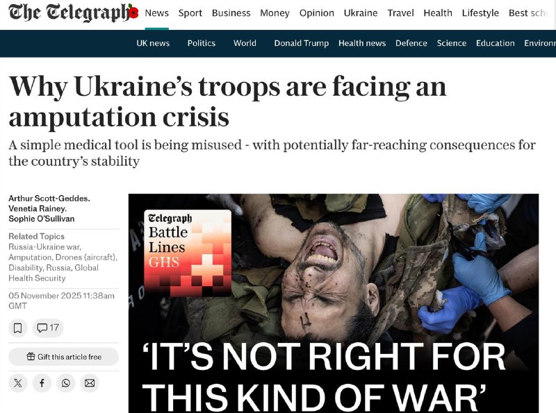 Про це пише британська газета The Telegraph із посиланням на військових лікарів.