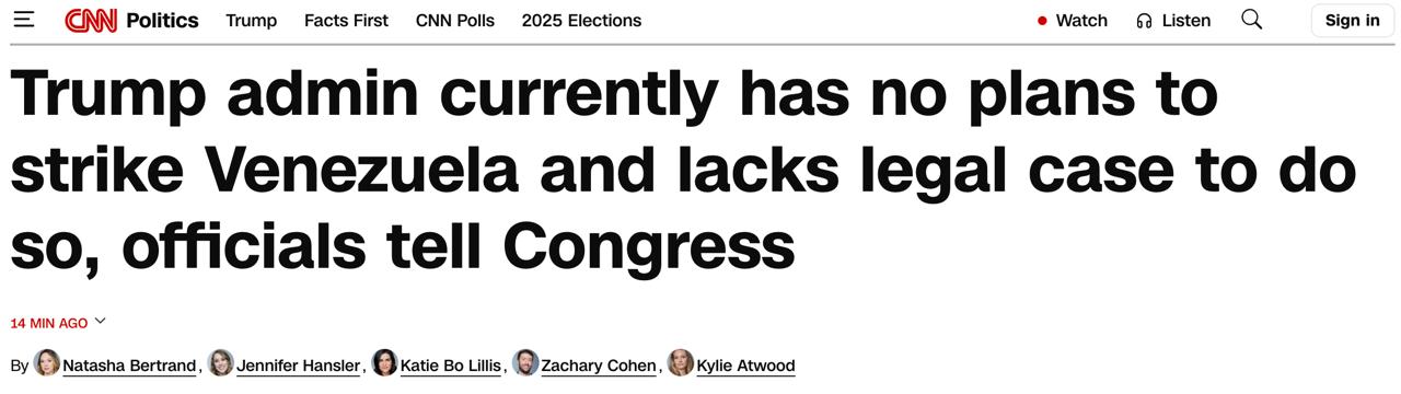 Адміністрація президента США Дональда Трампа напередодні членам Конгресу заявила, що поки що не планує ударів по Венесуелі.