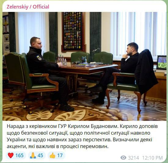 Тим часом Зеленський повідомив про зустріч із ще одним членом переговорної групи головою ГУР Кирилом Булановим. Пише, що окреслив "деякі акценти, важливі у процесі переговорів".