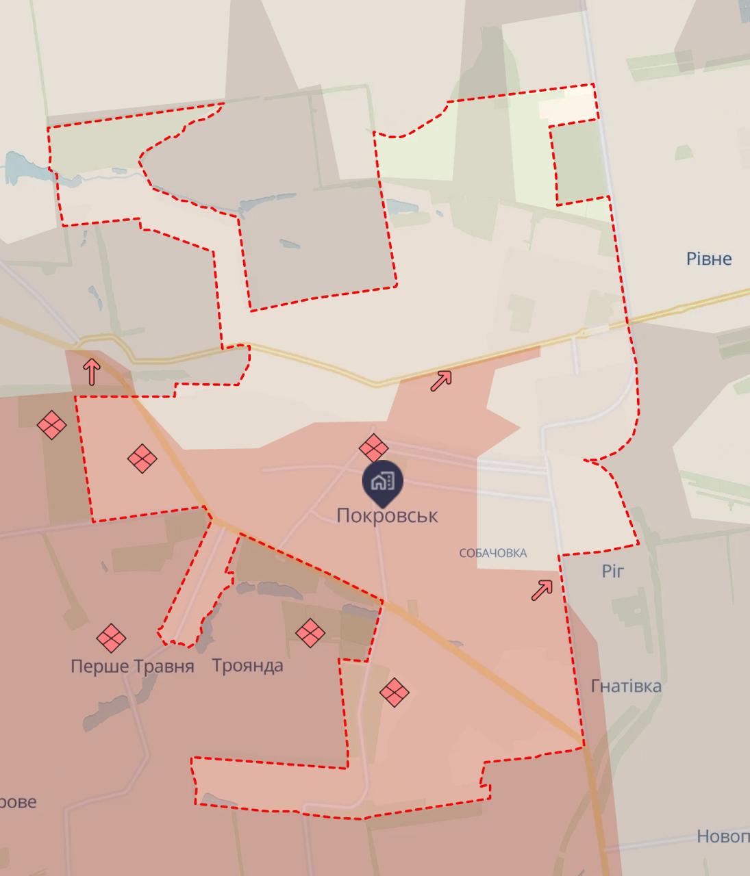 Зазначимо, що Україна заперечує втрату Покровська, заявляючи, що контролює райони на півночі міста. На карті Deep State місто показано майже повністю під контролем РФ або в сірій зоні, але підконтрольні ЗСУ дільниці також є.